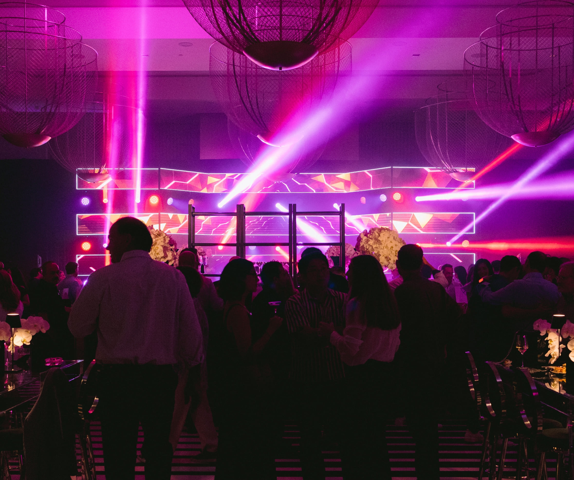 When dinner concluded, the night shifted gears as guests were ushered into a sleek after-party, a moody scene inspired by Mr. & Mrs. Smith with a touch of The Matrix. Dark, cinematic lighting and high-energy music set the tone as the host celebrated among his favorite people, bringing the evening to a bold, stylish finale.