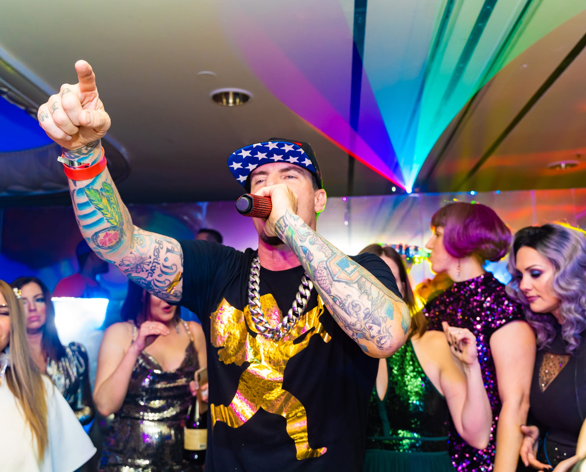 Vanilla Ice performed live amongst the NRL Mortgage team as they celebrated the holidays at The Houstonian. The entire evening was intentionally modern and sleek. A DJ dressed as an astronaut set the tone, while silver sphere installations and a striking ice sculpture gave the room a futuristic edge. Minimalist décor completed the look, making the night feel like a celebration in orbit.