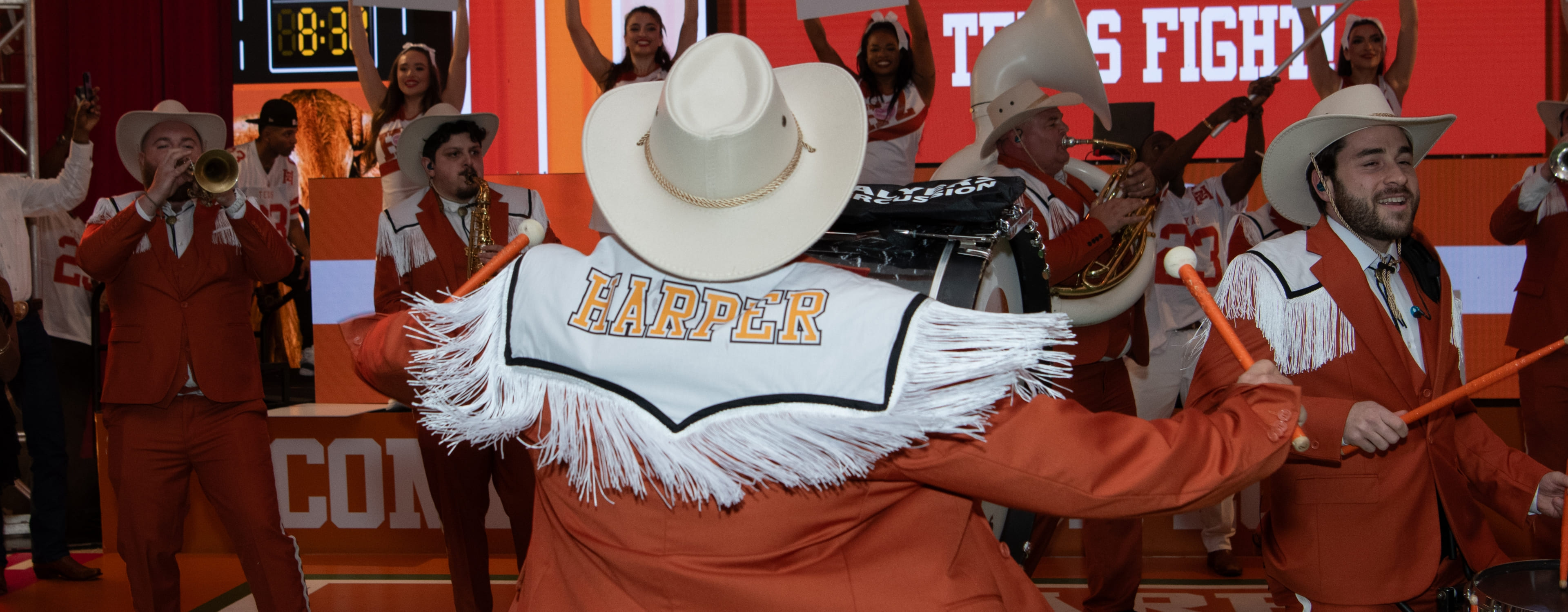 Guests stepped into a celebration that felt like a Saturday in Austin with a full-on burnt orange takeover. The UT Longhorn Marching Band and cheerleaders set the tone, filling the space with the electrifying sounds of “Texas Fight” and school spirit that had everyone cheering.